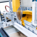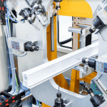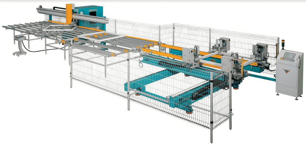 Línea de soldadura y limpieza de PVC de cuatro esquinas controlada por CNC que proporciona movimiento en 2 y 4 ejes. Después del proceso de soldadura en DK 540, el marco pasa a la Unidad de Enfriamiento (SA 250) automáticamente. Luego la Unidad Robot (SA 260) automáticamente toma los marcos de la Unidad de Enfriamiento (SA 250) donde se inicia el proceso de limpieza y los transporta girando hacia la Máquina de Limpieza CNC 608 o 610